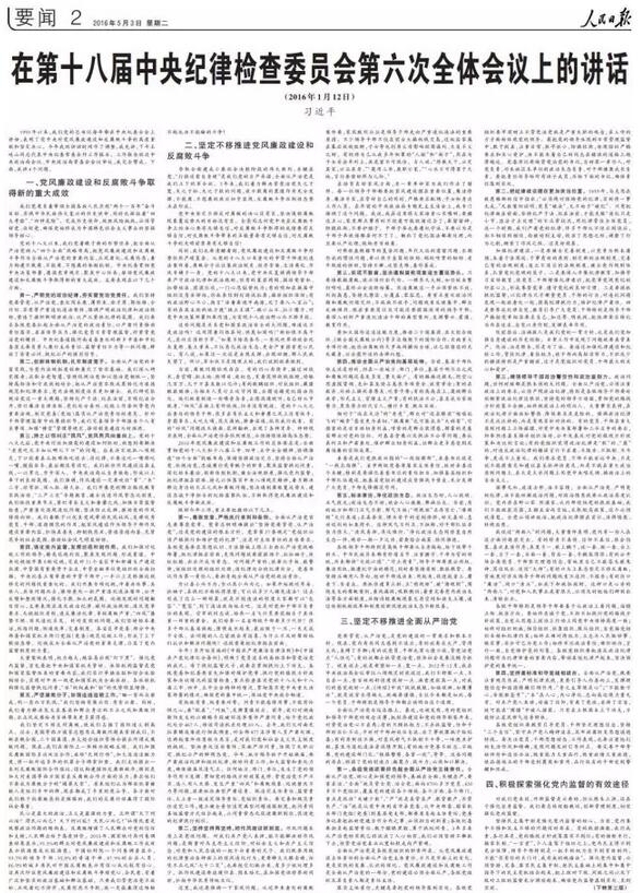 【學習大國按】5月3日,“五一”小長假后第一個工作日,習近平的又一篇講話全文公開發表——《在第十八屆中央紀律檢查委員會第六次全體會議上的講話》,看文章標題就知道這篇講話的分量。這是2016年1月12日在中央紀委全會上講的,全文近1.5萬字。