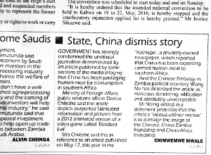 當(dāng)天,贊比亞另外一家私營主流報紙《每日國家報》也對此做了報道。