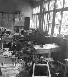 被縱火的教室一片狼藉。