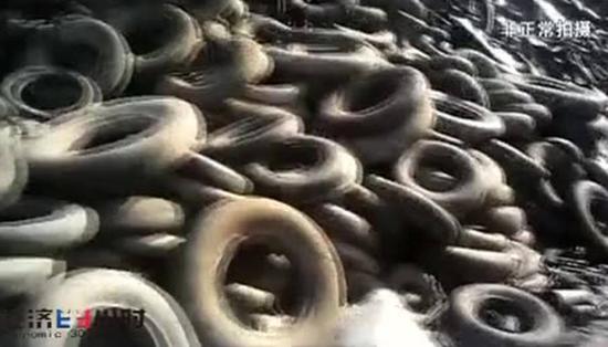 6月17日,記者再度來到了河北滄州市。施工單位的負責人張老板將記者帶到了距離滄州市區大約20公里外的地方,記者一下車就看到,從馬路旁邊開始,各種散發著臭氣的橡膠垃圾隨處可見。現場氣味刺鼻,記者一行,幾乎就是在垃圾堆里走路。