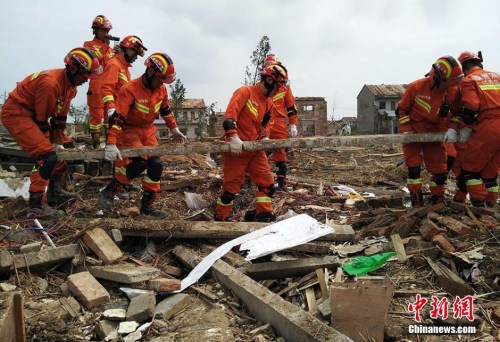 今天早晨4時30分,江蘇省軍區已從連云港、鹽城調集920余名官兵和3000余名民兵,兵分七路于上午7時許抵達阜寧縣受災的7個鄉鎮,目前已展開清理道路垃圾,幫助群眾強運生產生活物品和財物。