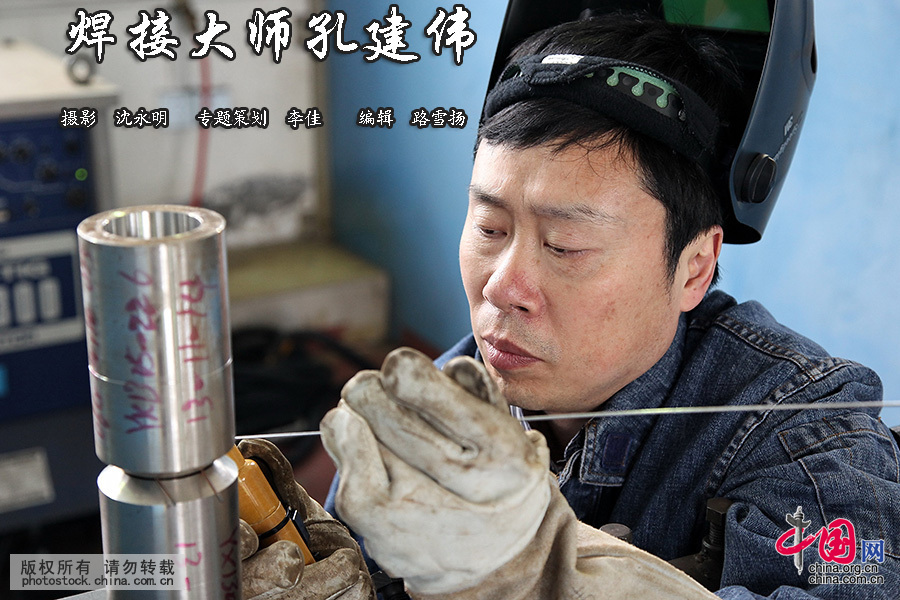 孔建偉認真完成每一項新產品焊接工藝技術攻關。 沈永明/攝