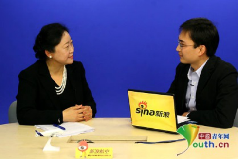 2010年,孫林在新浪網實習,采訪空客中國資訊副總裁米曉春。本人供圖