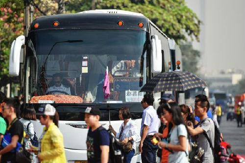 圖說:2016年2月11日,來自中國的團隊游客走在泰國曼谷大皇宮附近。 新華社發(fā)