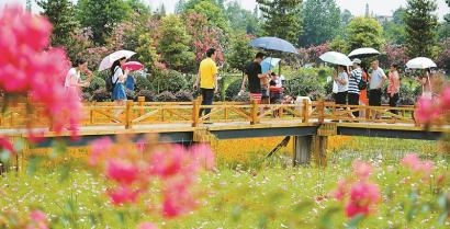 7月23日,成都市新都區軍屯鎮鄉村生態紫薇花海吸引眾多游客。該鎮共有15473畝耕地,多用于栽種苗木,綠化覆蓋率高達50%,是重要的花卉植物生態保護屏障,已榮獲“國家級生態鎮”稱號。 本報記者 衡昌輝 攝