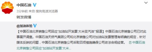 中新網7月27日電 近日有媒體報道,中石油加油站便利店開發票“大米變汽油”,據中國石油天然氣集團公司官方微博消息,中國石油北京銷售公司對所屬加油站發票管理進行全面排查,并對違反相關規定的人員進行嚴肅處理,立即開展專項整治工作。