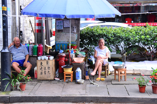 龔伯慶老人每天早上4點多就起床了,5點開始生爐、燒水、灌水、泡茶,早上7點多,他的茶水一定會準時擺上攤,直到晚上10點才收攤,風雨無阻。龔伯慶老人的茶攤擺了一年又一年,街坊鄰居們也都被老人的行為所感動,看到老人搬東西時,都會主動上前搭把手。茶攤對面賣水泵的店主還經常為龔伯慶提供發煤爐的燃料。