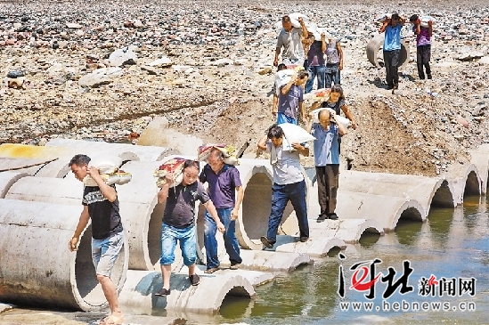 8月2日,磁縣陶泉鄉五里河村,干部群眾正在清理河道中被沖毀的樹木,以防洪水再次來襲時阻塞河道帶來次生災害。洪水過后,該村干部帶領群眾積極自救,重建家園,盡力恢復正常的生產生活秩序。河北日報記者趙威攝