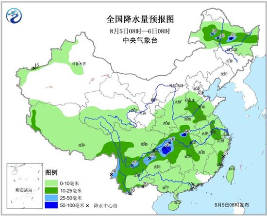 受高空冷渦和低層切變系統影響,8月5日至7日,西南地區東部和南部、江漢、黃淮西部、江南北部等地的部分地區有分散性的中到大雨,局地有暴雨或大暴雨,上述局部地區并伴有短時強降水、雷暴大風或冰雹等強對流天氣。