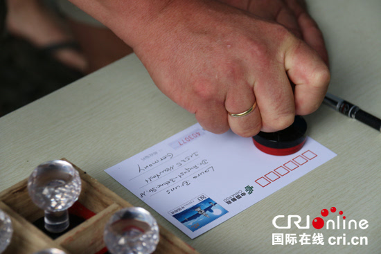 德國游客體驗“微笑亭”DIY明信片服務(wù)。攝影:趙妍