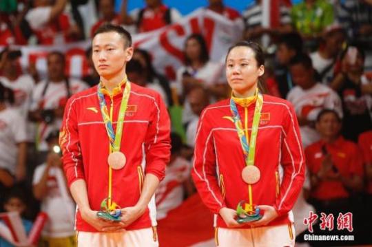 圖為中國組合張楠/趙蕓蕾獲得里約奧運會羽毛球混合雙打銅牌。 中新網記者 盛佳鵬 攝