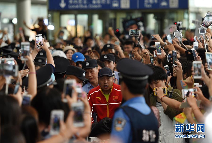8月20日,中國(guó)乒乓球隊(duì)總教練劉國(guó)梁(中)抵達(dá)北京首都國(guó)際機(jī)場(chǎng)。 當(dāng)日,參加里約奧運(yùn)會(huì)的中國(guó)乒乓球隊(duì)抵達(dá)北京首都國(guó)際機(jī)場(chǎng)。新華社記者鞠煥宗攝