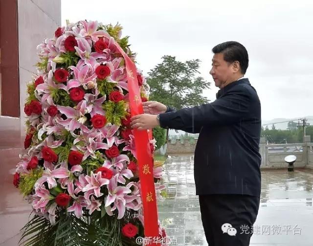 7月18日,習近平到寧夏回族自治區考察,向紅軍長征會師紀念碑敬獻花籃。