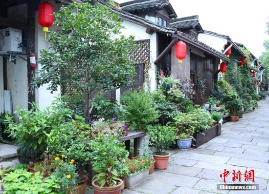 資料圖:8月10日,浙江杭州小河直街一居民住所門口的植物長(zhǎng)得郁郁蔥蔥。杭州小河直街歷史文化街區(qū)地處京杭大運(yùn)河、小河、余杭塘河三河交匯處。G20杭州峰會(huì)召開在即,小河直街也來了一次華麗“變身”成為花園街。 中新社記者 章天啟 攝