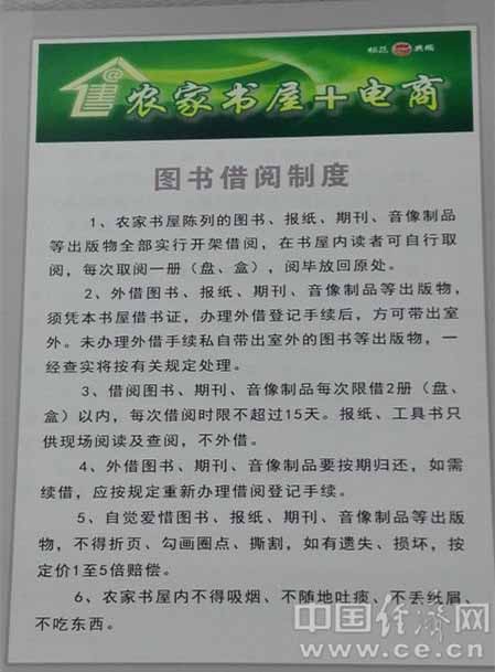 鳳凰村農家書屋+電商圖書借閱制度牌。