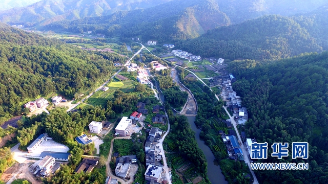 長汀縣上蕉村航拍圖。該村是福建省扶貧開發重點村。在精準扶貧政策下,該村最明顯的變化就是村里的新房多了,小車多了,今年新蓋新房152棟,新購置小車46部。