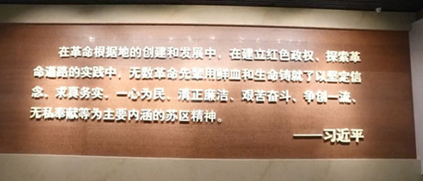 “蘇區干部好作風,自帶干糧去辦公;日著草鞋干革命,夜走山路訪貧農”,離開蘇區干部好作風陳列館,這支山歌仍在我們的耳邊回響。