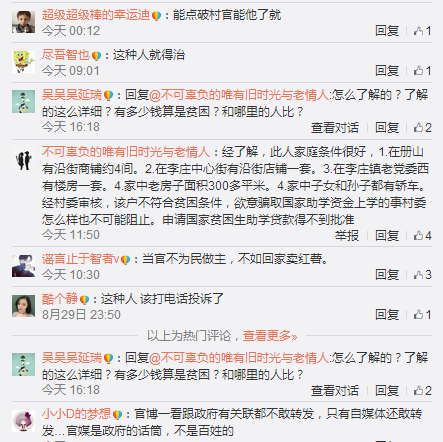 但也有網友在爆料微博下面留言稱,視頻有剪輯,希望大家能夠鑒別真偽。網友“不可辜負的唯有舊時光與老情人” 說,經了解,此人家庭條件很好,有沿街商鋪約4間,在李莊中心街有沿街店鋪一套,在李莊鎮老黨委西有樓房一套,家中老房子面積300多平米,家中子女和孫 子都有轎車。經村委認真審核,該戶不符合貧困條件。欲意騙取國家助學資金。