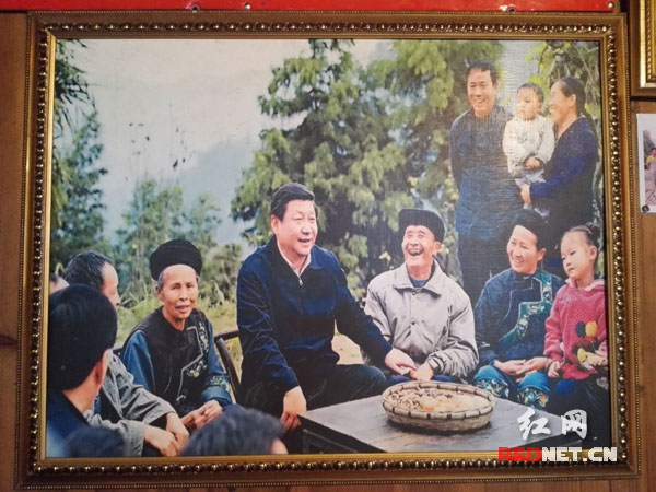2013年11月3日,習近平總書記來到十八洞村考察。這天,習近平總書記來到施成富家,拉著他和他73歲的老伴龍德成拉家常,還和村干部、村民代表坐在他家門口座談。就在座談時,習近平總書記對扶貧攻堅作出了“實事求是、因地制宜、分類指導、精準扶貧”重要指示,78歲的苗家老漢施成富也成了當地“名人”。