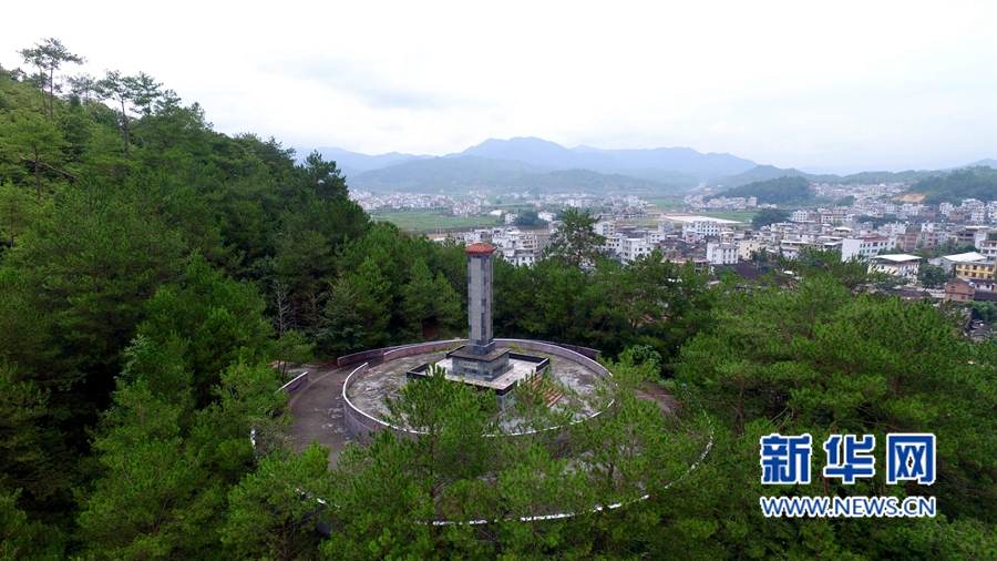 新泉鎮的紅色旅游景點吸引游客紛至沓來。圖為一名游客在拍照。