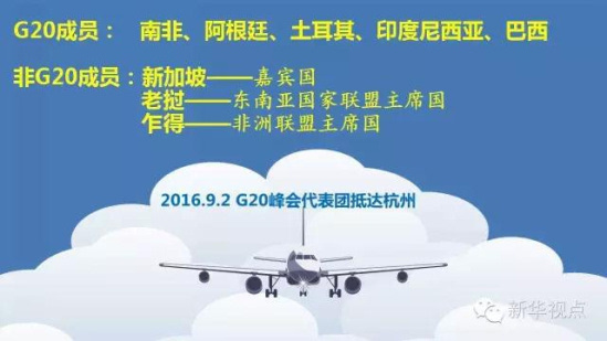在此,先澄清一個誤區(qū)。這次來杭州參加G20峰會的,不都是G20成員,還有嘉賓國和國際組織代表團。還以今天抵達的代表團為例: