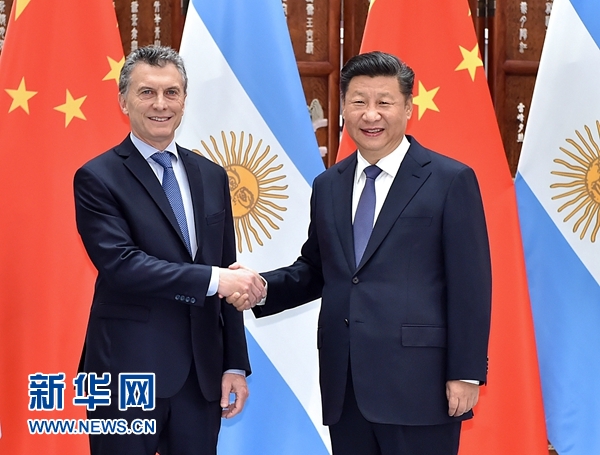 9月3日,國家主席習近平在杭州會見前來出席二十國集團領(lǐng)導人杭州峰會的阿根廷總統(tǒng)馬克里。 新華社記者 李濤 攝