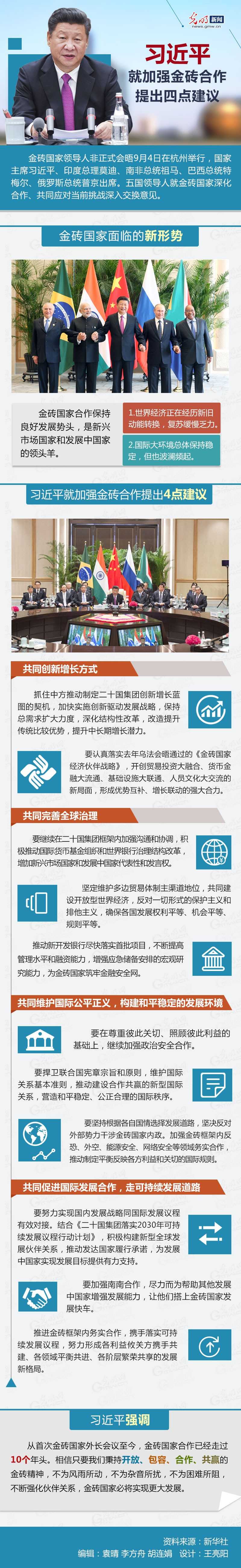 在發表題為《開拓機遇應對挑戰》的重要講話中,習近平針對金磚國家如何更好發揮作用提出了四點建議。習近平主席的發言著眼長遠、高屋建瓴,“四點建議”有的放矢、引領未來。這四點建議的具體內容是什么,我們不妨一起來看一下。