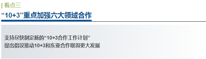 10+3合作是建設(shè)東亞經(jīng)濟(jì)共同體、推進(jìn)東亞合作的主渠道,將于明年迎來成立20周年。今年以來,10+3合作在財(cái)政金融、糧食安全等領(lǐng)域取得積極成果。李克強(qiáng)總理將在10+3領(lǐng)導(dǎo)人會議上推動各方加大投入,進(jìn)一步明確機(jī)制未來發(fā)展方向。推動共同落實(shí)好《2013-2017年10+3合作工作計(jì)劃》和《第二東亞展望小組報(bào)告》,支持盡快制定新的“10+3合作工作計(jì)劃”,重點(diǎn)加強(qiáng)金融安全、貿(mào)易投資、農(nóng)業(yè)減貧、互聯(lián)互通、產(chǎn)能和人文領(lǐng)域合作,并提出一系列倡議推動10+3和東亞合作取得更大發(fā)展,共同邁向東亞經(jīng)濟(jì)共同體的既定目標(biāo)。