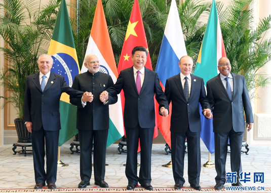 9月4日,金磚國家領導人非正式會晤在杭州舉行,國家主席習近平、印度總理莫迪、南非總統祖馬、巴西總統特梅爾、俄羅斯總統普京出席。新華社記者姚大偉攝