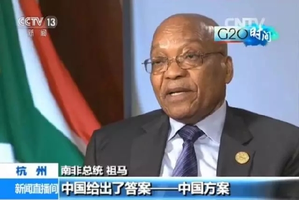 南非總統(tǒng)祖馬表示,作為非洲國家的代表,他很贊同G20杭州峰會(huì)上習(xí)主席提出的全球治理的中國方案,他認(rèn)為這不僅會(huì)促進(jìn)非洲經(jīng)濟(jì)的增長,也為全球經(jīng)濟(jì)增長做出貢獻(xiàn)。