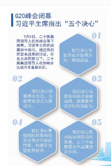 同其心,一其力。從杭州出發(fā),各國攜手同行,世界經(jīng)濟(jì)必將迎來光明的未來。