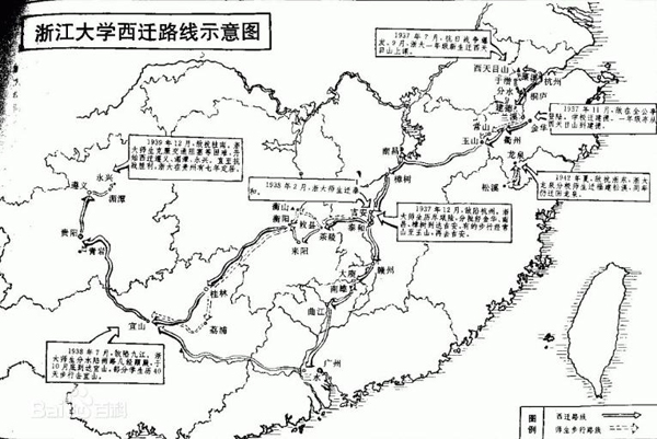 浙江大學西遷路線圖。(圖片取自網絡)