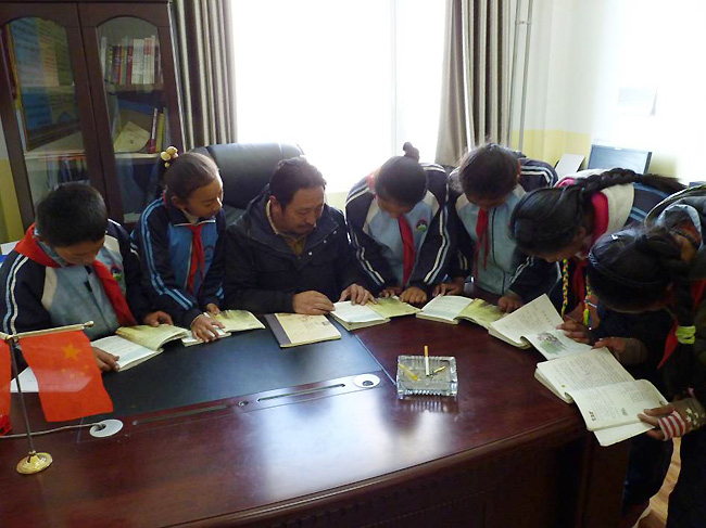 2014年,稱多縣教育局號(hào)召教師去牧區(qū)邊遠(yuǎn)村級(jí)學(xué)校開展送教支教活動(dòng),王宏老師不顧身體殘疾,第一個(gè)報(bào)名參加,并親自率隊(duì)去條件最艱苦的村小紅旗小學(xué)送教。