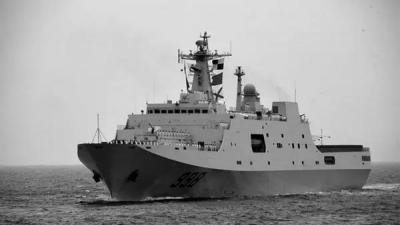 昆侖山艦是由我國第一艘自主研制的兩棲船塢登陸艦,舷號998,2008年入列,排水量近2萬噸。裝備主、副炮和干擾彈發射裝置,具備一定的防空能力。該艦設有塢艙、車輛庫、機庫等大型裝載艙,可同時搭載多架直升機、數艘氣墊艇以及數十輛兩棲坦克。該艦最大航程上萬海里,可在除極區以外的任何海區航行,可搭載登陸兵力實施遠程立體投送。