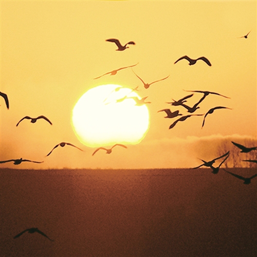 云南會澤大橋鄉黑頸鶴剪影。當地生態環境良好,每年吸引大量黑頸鶴到此棲息。