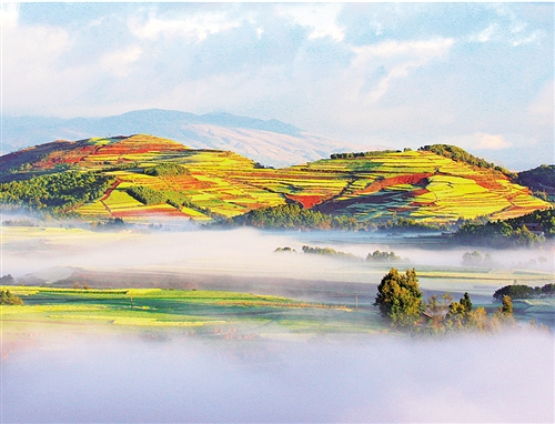 云南會澤縣念湖七彩土地美景如畫。1935年4月,中央紅軍第九軍團長征經過會澤時,1500余名有志青年參加了紅軍。 王高祥攝
