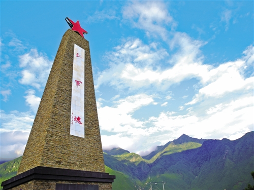 四川瀘定縣嵐安紅軍烈士紀念碑在藍天白云映襯下莊嚴肅穆。1935年,中國工農紅軍紅32軍和紅4軍長征到此。 曹正平攝