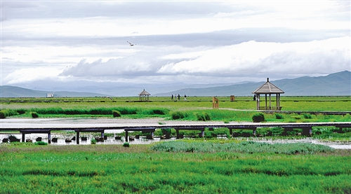 四川阿壩若爾蓋大草原,人們沿著生態棧道領略美景。當年紅軍三過草地,在這里留下了許多可歌可泣的動人故事。