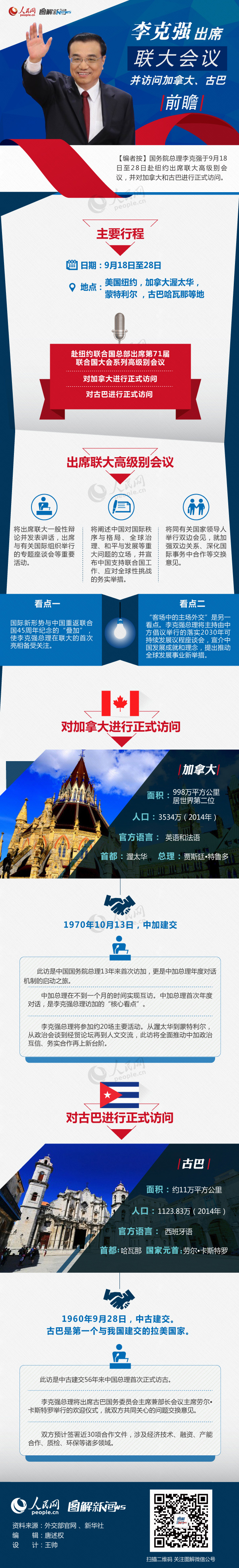 圖解:李克強出席聯大會議并訪問加拿大、古巴前瞻