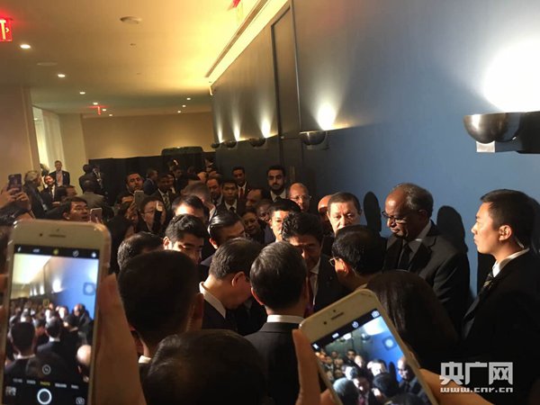 央廣網紐約9月21日消息(記者馬喆)當地時間21日上午,李克強在紐約聯合國總部出席第71屆聯大一般性辯論并發言。總理發言結束后,日本首相安倍晉三在會場外過道處走上前與李克強握手交談。