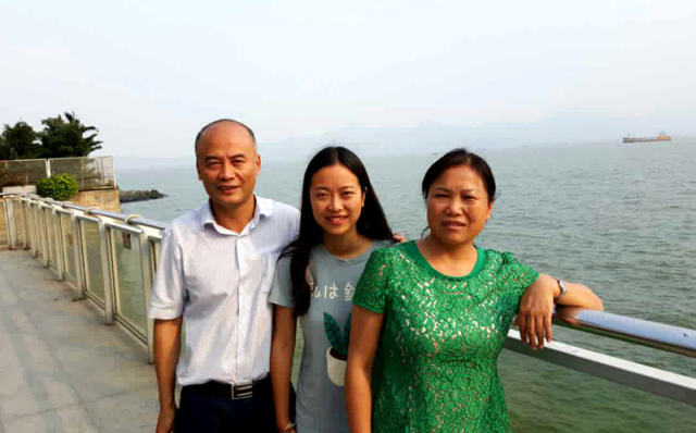 2015年,姜仕坤送女兒上大學,全家在深圳留影。(資料照片)