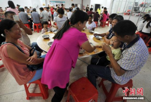 9月27日,福建晉江圍頭鎮(zhèn)一些住在危險(xiǎn)地帶及棚戶區(qū)的180余人被轉(zhuǎn)移安置在晉江石圳華僑中學(xué)應(yīng)急安置點(diǎn),正在用晚餐。