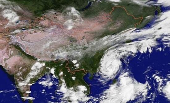 臺風“鲇魚”登陸前后的衛(wèi)星云圖。