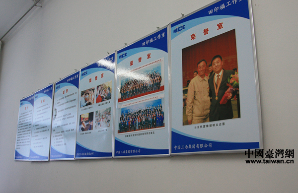 田印福曾獲得“全國職工技術創新獎”、“海峽兩岸創新成果展金獎”、“遼寧省十大創新成果獎”、“鞍山市科技進步獎”等獎項40余項,榮獲“遼寧省節約環保標兵”、“遼寧省勞動模范”、“遼寧好人”、“全國勞動模范”等諸多稱號,成為享受國務院特殊津貼的專家。圖為田印福展示的部分榮譽。(中國臺灣網 李帥 攝)