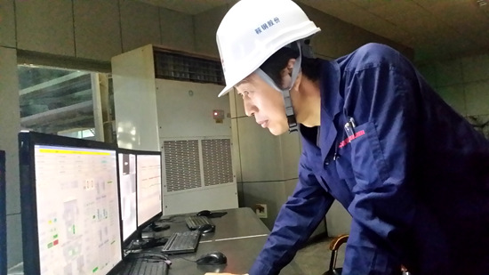 林學(xué)斌在操作臺(tái)上通過監(jiān)測系統(tǒng)監(jiān)測生產(chǎn)線狀態(tài)