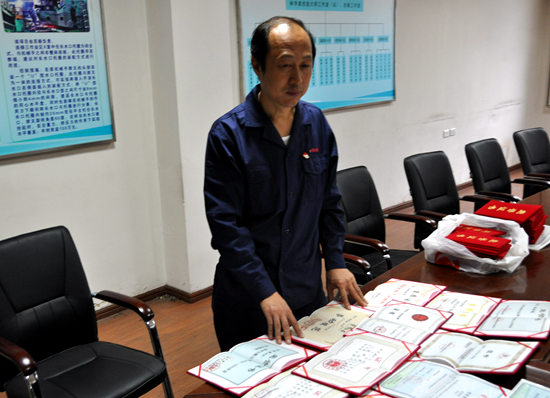 林學(xué)斌給記者展示所獲得的各種榮譽(yù)證書