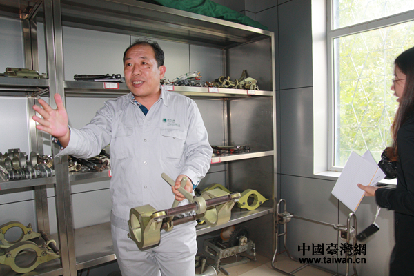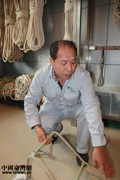 趙文武手拿工作工具,向記者講述工作過程。(中國臺灣網 李帥 攝)