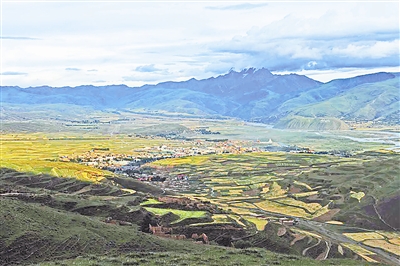 圖:遠眺海拔3400米的甘孜縣城。本報記者 王衛(wèi)東攝