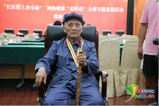 百歲老紅軍王承登為記者講述長征故事。中國青年網(wǎng)記者李川 攝
