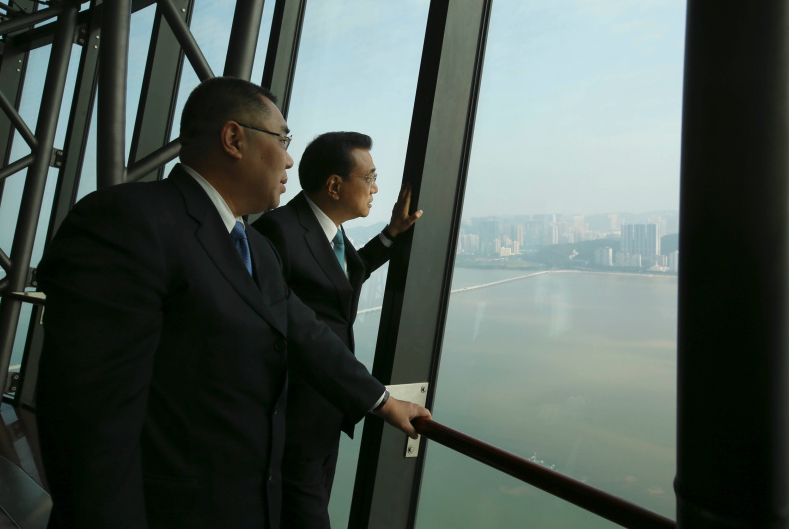 【李克強登上澳門旅游塔俯瞰濠江全貌】正在澳門視察的李克強總理,10日下午在崔世安特首的陪同下登上澳門旅游塔223米高的主觀光層,俯瞰濠江全貌,并聽取澳門促進經(jīng)濟適度多元可持續(xù)發(fā)展的產(chǎn)業(yè)策略,以及城市發(fā)展策略的匯報。